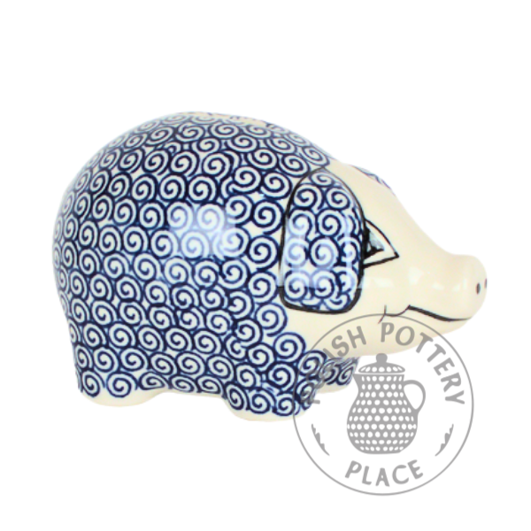 Built with sturdy ceramic walls and an air-tight rubber plug underneath, you can trust this cute little pig to keep your change safe! His slot is big enough for all coin sizes, as well as single folded bills. Fun for adults and children! Handmade in Bolieslawiec, Poland, it is chip and scratch resistant, lead and cadmium free.  Dishwasher safe.