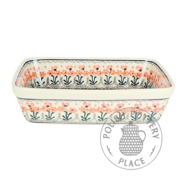This sweetly decorated piece is perfect for presenting smaller casseroles and desserts.  Handmade in Boleslawiec, Poland, it is chip and scratch resistant, lead and cadmium free.  Dishwasher, microwave, oven, and freezer safe.  Dishwasher, microwave and freezer safe.