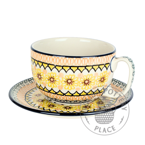 12oz Cup & Saucer Set - Geometric Sunflowers